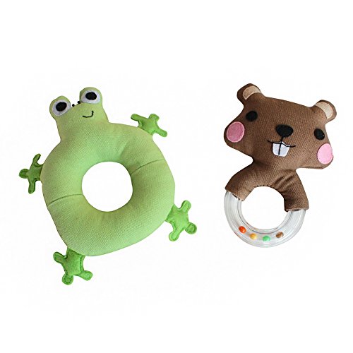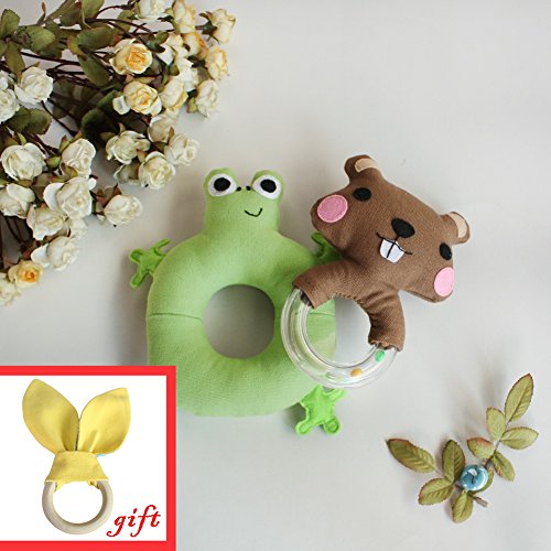 2のセット、1台のグリーンキャンバスのカエルのおもちゃ、そして1頭のブラウンリスラトル