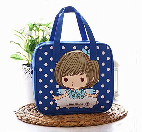 キッズ/学生のランチトートバッグ再利用可能なランチバッグピクニックバッグ、ブルー