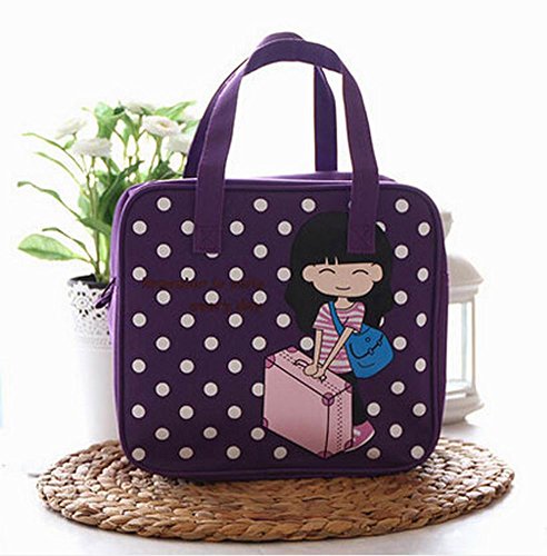 キッズ/学生のために漫画紫ランチトートバッグ再利用可能なランチボックスバッグ
