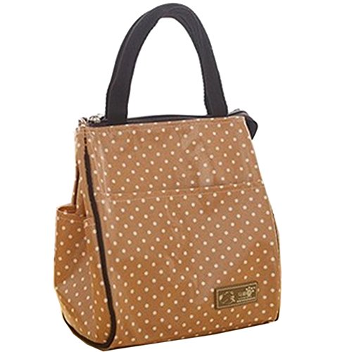 ラウンドドットラブリーバッグランチトートバッグファッションシンプル保冷弁当バッグ(カーキ)