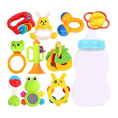 歯の教育用おもちゃを噛んでTeetherハンドベルのおもちゃ新生児のギフトセット赤ちゃん、10個