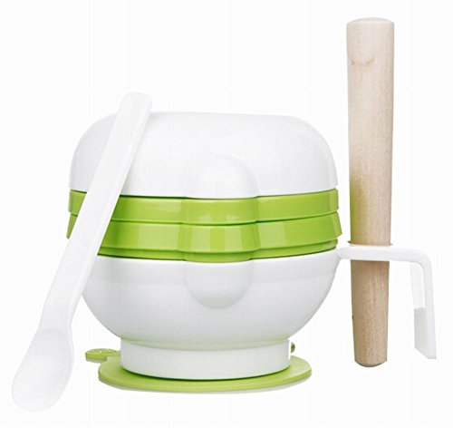 出産祝い ベビー食器 離乳食調理器具 破砕 研削ボウル ベビーフード研磨器具 すりこぎ付 赤ちゃん 調理セット 離乳食用 安全 便利 簡単 実用性(草の緑)