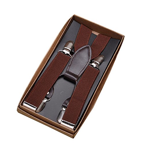 キッズ/子供弾性サスペンダークリップ4つのクリップオンアジャスタブルサスペンダー[コーヒー]