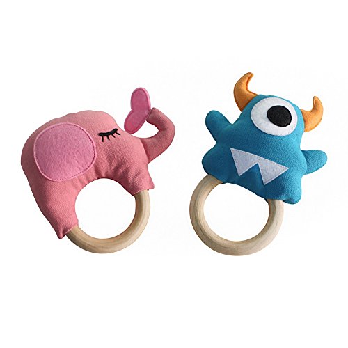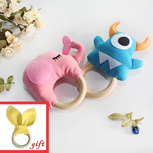 [ピンクエレファントとブルーモンスター]創造的な赤ちゃんの木製の娘のおもちゃ、2PCS