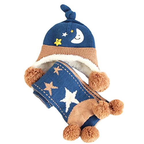 冬のベビーキッズ暖かいイヤーマフ帽子スカーフ快適なぬいぐるみ通気性のベストギフトセットブルーキャップ