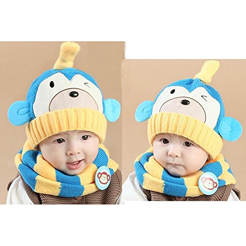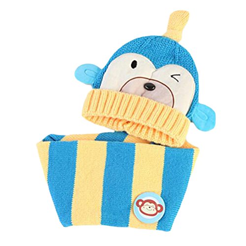 かわいい冬のベビーキッズガールズボーイズ帽子暖かいスカーフは、ぬいぐるみの耳キャップギフトセットブルーの保護