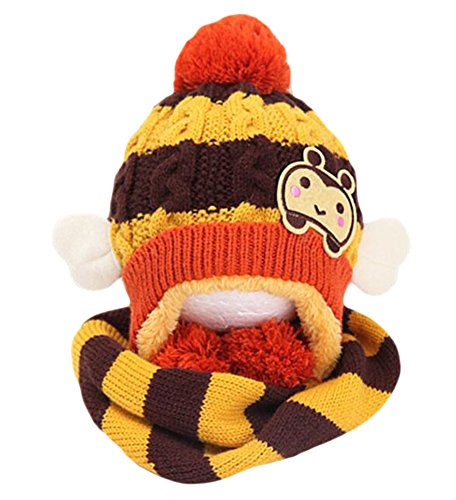 冬のベビーキッズガールズボーイズ帽子暖かいスカーフは、ぬいぐるみの耳キャップギフトセット-コーヒーを守ります