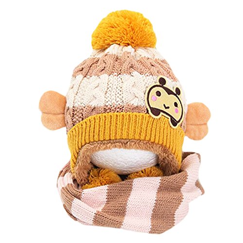 冬のベビーキッズガールズボーイズ帽子暖かいスカーフは、ぬいぐるみの耳キャップギフトセット・ベージュを守ります