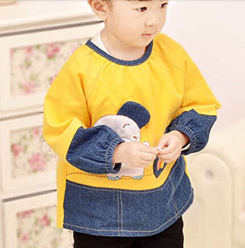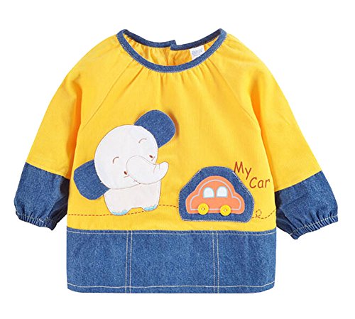 幼児 赤ちゃん ベビー 子供服 お食事用 スモック 幼稚園キッズ 絵画用エプロン うわっぱり 防水 防汚 洗いやすい 快適 可愛い 純綿 (イエロー)