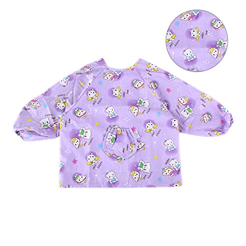 幼児 赤ちゃん ベビー 子供服 お食事用 スモック 幼稚園キッズ 絵画用エプロン うわっぱり 防水 防汚 快適 柔らかい 綿製 2PCS 1-3歳(紫)