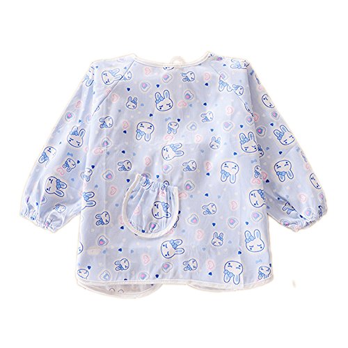 幼児 赤ちゃん ベビー 子供服 お食事用 スモック 幼稚園キッズ 絵画用エプロン うわっぱり 防水 防汚 洗いやすい 快適 柔らかい 綿製 2PCS(ブルー)