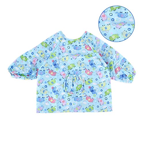幼児 赤ちゃん ベビー 子供服 お食事用 スモック 幼稚園キッズ 絵画用エプロン うわっぱり 防水 防汚 快適 柔らかい 綿製 2PCS 1-3歳(空色)
