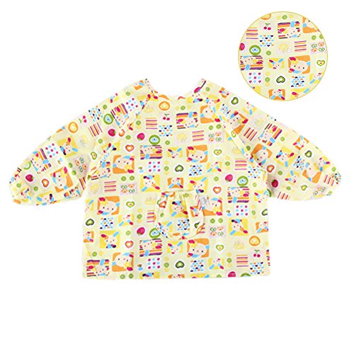 幼児 赤ちゃん ベビー 子供服 お食事用 スモック 幼稚園キッズ 絵画用エプロン うわっぱり 防水 防汚 快適 柔らかい 綿製 2PCS 1-3歳(黄色)