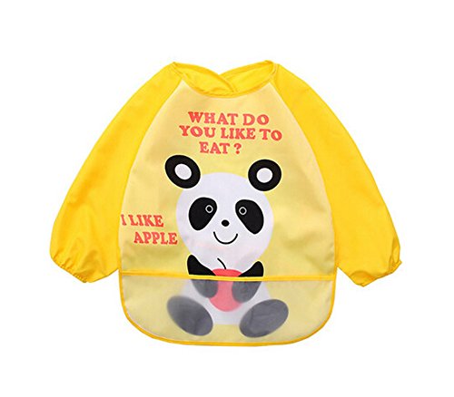 幼児 赤ちゃん ベビー 子供服 お食事用 スモック 幼稚園キッズ 絵画用エプロン うわっぱり 防水 防汚 洗いやすい 快適 柔らかい 0-3歳(イエロー)