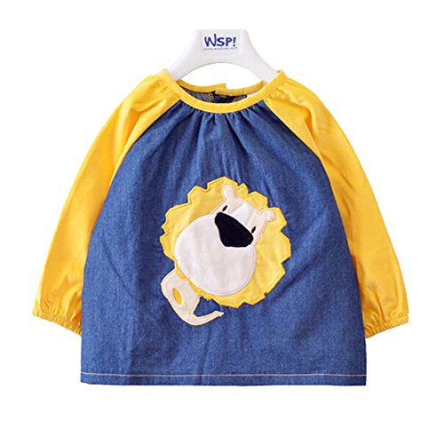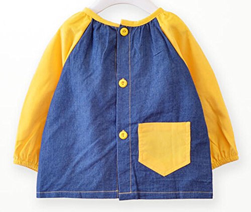 幼児 赤ちゃん ベビー 子供服 お食事用 スモック 幼稚園キッズ 絵画用エプロン うわっぱり 防水 防汚 洗いやすい 快適 柔らかい 綿製 Mサイズ(黄・青)