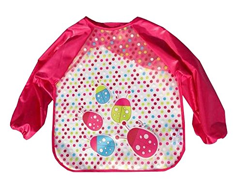 【レッド】赤ちゃん ベビー 子供服 お食事用スタイ スモック エプロン うわっぱり 防水 防汚 洗いやすい 快適 柔らかい 通気 1ー3歳(90)