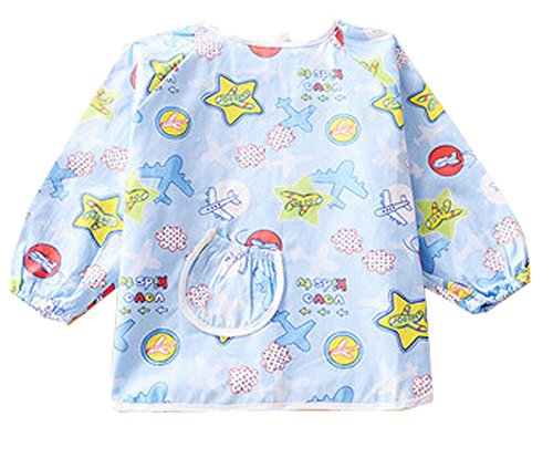 【ブルー】赤ちゃん ベビー 子供服 お食事用スタイ スモック エプロン うわっぱり 防水 防汚 洗いやすい 快適 柔らかい 綿製 3ー6歳 2点(Lサイズ)