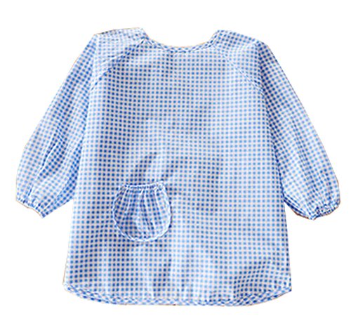 【ブルー】赤ちゃん ベビー 子供服 お食事用スタイ スモック エプロン うわっぱり 防水 防汚 洗いやすい 快適 柔らかい 通気 可愛い 1ー2歳(90)