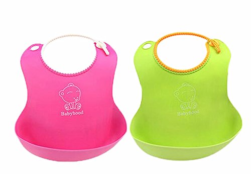 2つのソフトベビーよだれかけ防水食品キャッチャーポケットの色ビブグリーンローズのセット
