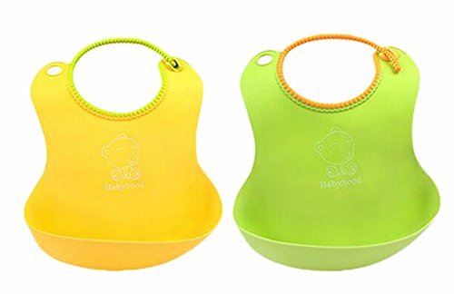 2つのソフトベビーよだれかけ防水食品キャッチャーポケットの色ビブイエローグリーンのセット