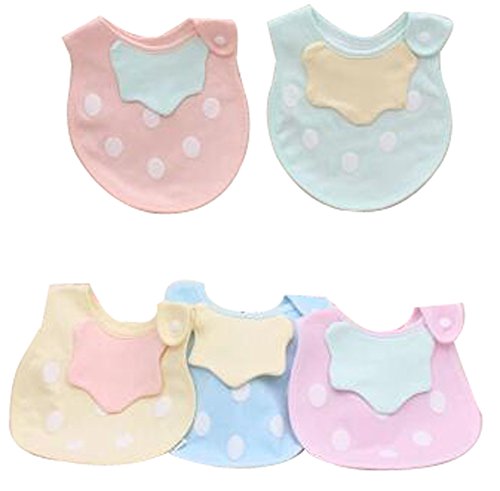 5つのベビービブ防水ソフトアジャスタブルNeckbanピンクグリーンイエロー・ブルーのセット