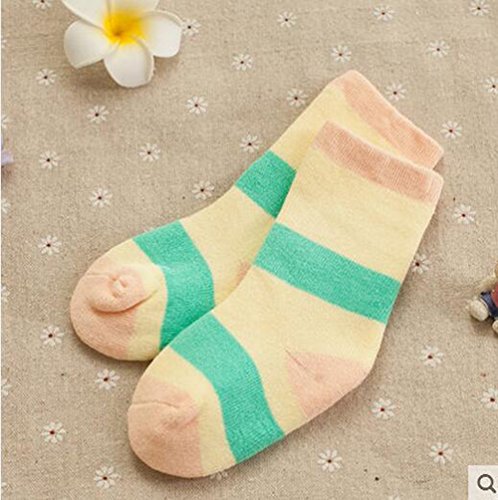 2新生児厚く暖かい綿の靴下0-24ヶ月の赤ちゃんグリーンイエローストライプのセット
