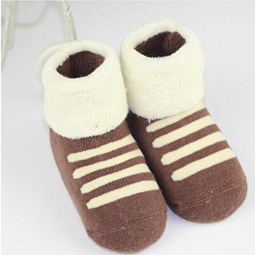 2新生児厚く暖かい綿の靴下0-24ヶ月の赤ちゃんのコーヒーのセット