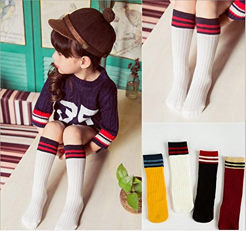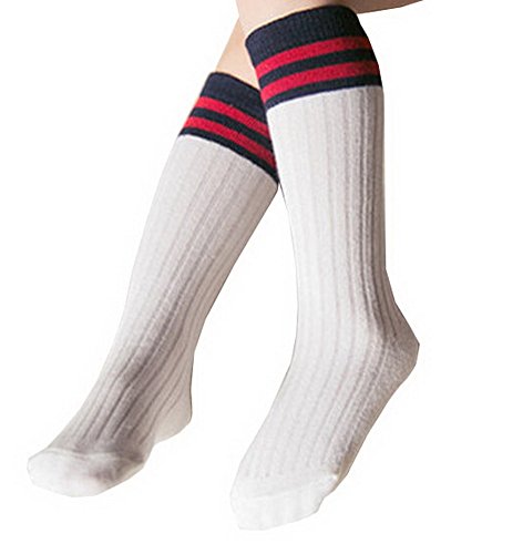 子供のための2ペアニーハイストッキングユニセックス - 赤ちゃんのチューブソックス[ストライプ、ホワイト]