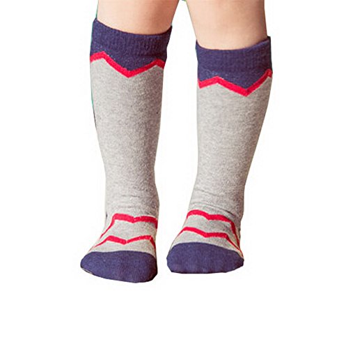 子供のための2ペアニーハイストッキングユニセックス - 赤ちゃんのチューブソックス[波、グレー]