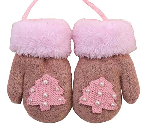 [ピンクの木]ラブリーニットベビー手袋の子供暖かい冬の手袋を