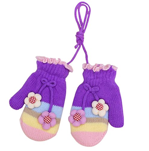 [パープル&フラワー]かわいい手袋屋外のための暖かい冬のベビーニットウールミトン