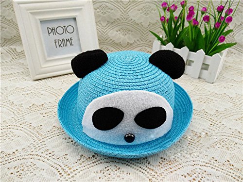 アウトドアスポーツ 日焼け防止 UVカット韓国大人気 通気 草編み 春夏 日よけ帽・麦わら帽子・キャップ・可愛いハット、赤ちゃん&子供用、スカイブルー ベア