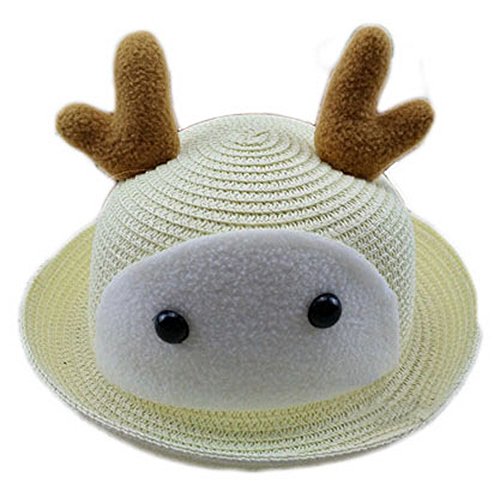 アウトドアスポーツ 日焼け防止 UVカット 韓国 人気 通気 草編み 春夏 日よけ帽・麦わら帽子・キャップ・可愛いハット、赤ちゃん&子供用、鹿の角 乳白色