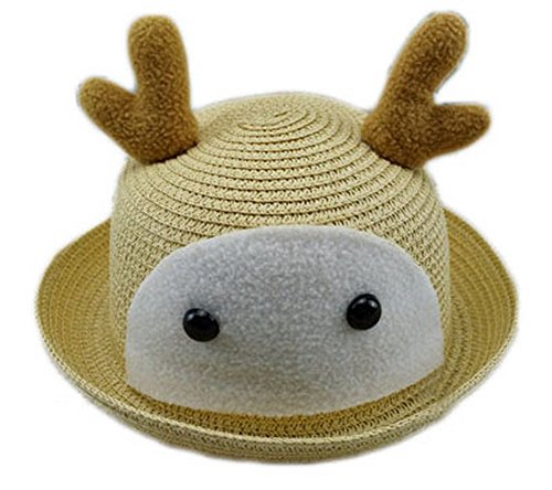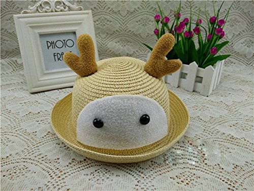アウトドアスポーツ 日焼け防止 UVカット 韓国 人気 通気 草編み 春夏 日よけ帽・麦わら帽子・キャップ・可愛いハット、赤ちゃん&子供用、鹿の角 クリームいろ