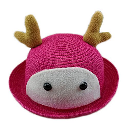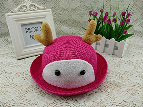アウトドアスポーツ 日焼け防止 UVカット 韓国 人気 通気 草編み 春夏 日よけ帽・麦わら帽子・キャップ・可愛いハット、赤ちゃん&子供用、鹿の角 ポピーレッド
