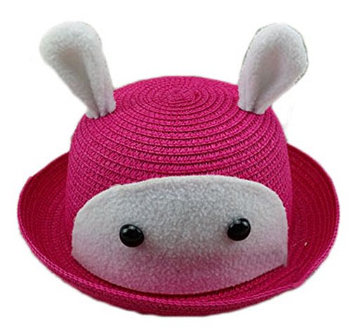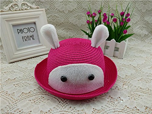 アウトドアスポーツ 日焼け防止 UVカット 韓国 人気 通気 草編み 春夏 日よけ帽・麦わら帽子・キャップ・可愛いハット、赤ちゃん&子供用、ウサギの耳 ローズ色