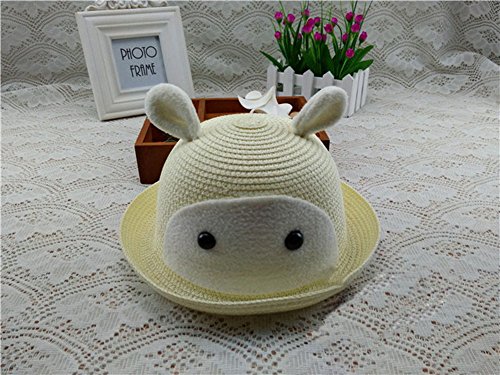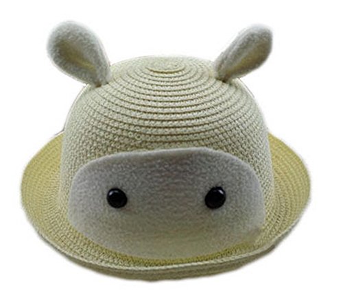 アウトドアスポーツ 日焼け防止 UVカット 韓国 人気 通気 草編み 春夏 日よけ帽・麦わら帽子・キャップ・可愛いハット、赤ちゃん&子供用、ウサギの耳 乳白色