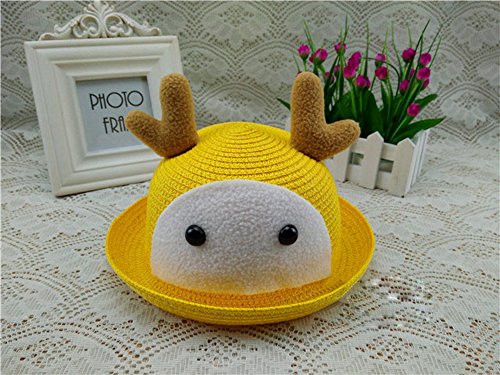 アウトドアスポーツ 日焼け防止 UVカット 韓国 人気 通気 草編み 春夏 日よけ帽・麦わら帽子・キャップ・可愛いハット、赤ちゃん&子供用、鹿の角 イエロー