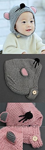 4-24ヶ月の[マウス]ソフト冬ニット帽子暖かいウールキャップ/ハット、グレー