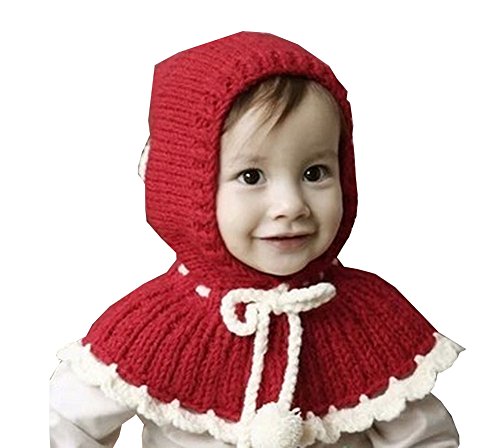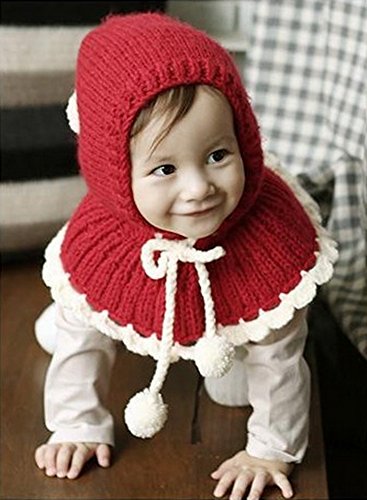 秋冬 赤ちゃん 新生児 韓国風格 防寒 防風 暖かい 可愛い マント式の帽子 ニット帽 ショール キャップ ハット 3-12ヶ月(レッド)