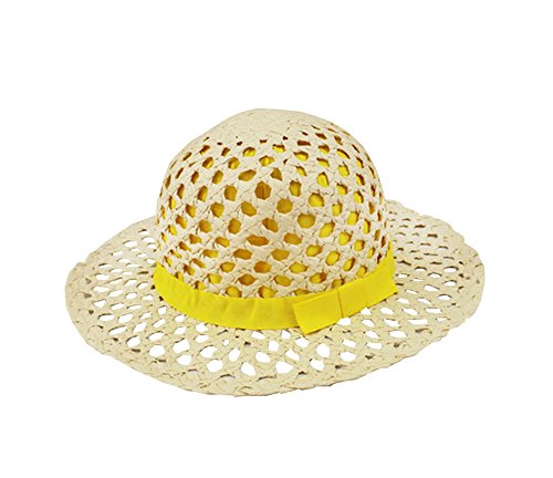 赤ちゃん 子供 韓風 麦わら 編み 日よけ帽 キャップ ハット 帽子 紫外線 防止 肌触り 柔らかい 通気 快適 54cm 3-8歳(イエロー)
