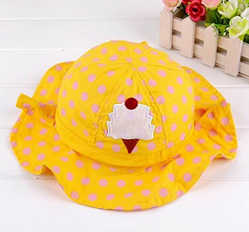 出産祝い ギフト ベビー 赤ちゃん 日よけ帽 キャップ ハット帽子 紫外線 防止 お出かけ用 水玉 可愛い 柔らか 通気 快適 48cm 1-2歳(イエロー)
