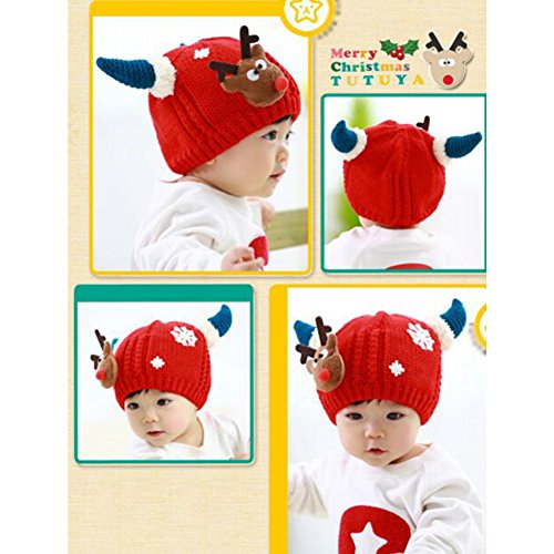 冬のベビーキッズガールズボーイズのクリスマス帽子暖かい鹿かぎ針編みは6-12ヶ月の赤ちゃん、赤のための最高の贈り物キャップ