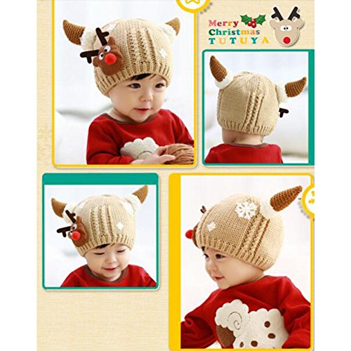 冬のベビーキッズクリスマス帽子暖かい鹿かぎ針編みは6-12ヶ月の赤ちゃん-カーキのための最高の贈り物キャップ