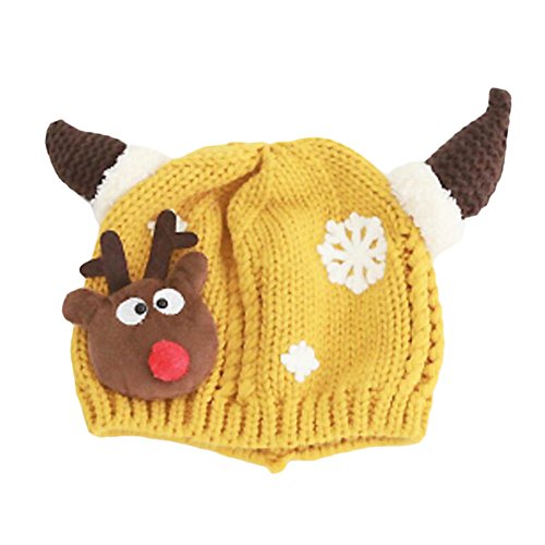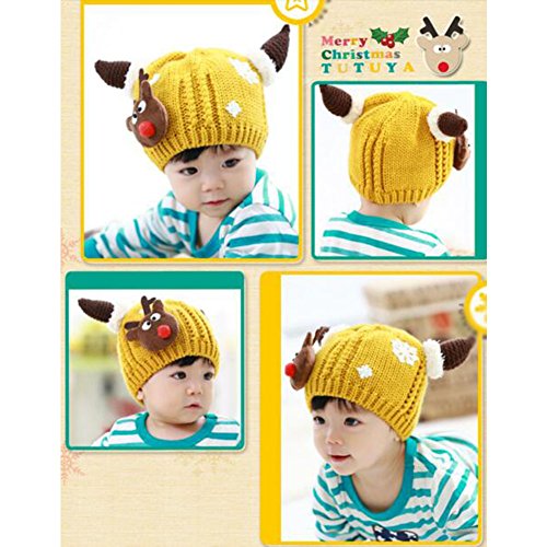 冬のベビーキッズクリスマス帽子暖かい鹿かぎ針編みは6-12ヶ月の赤ちゃん、黄色のための最高の贈り物キャップ