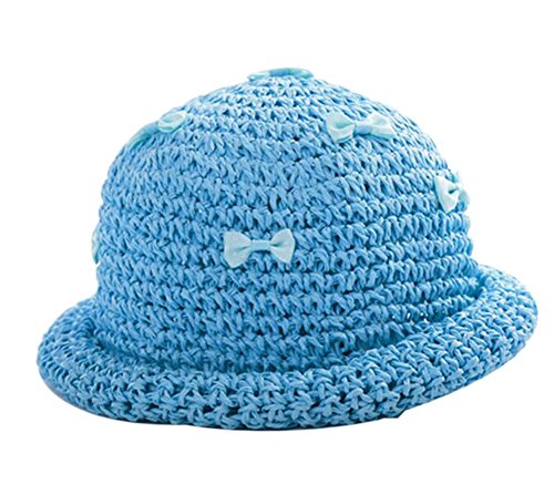 1-5Y赤ちゃんサンハット、[太陽の帽子とボウタイ、青] 赤ちゃん麦わら帽子