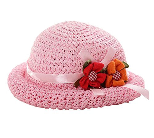 ピンク、赤ちゃんの夏のビーチ太陽の麦わら帽子、[2つの花を持つ太陽の帽子]