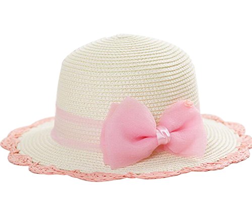 女の子ビーチ麦わら帽子、ベビーピンク蝶ネクタイビーチハット、サンハット