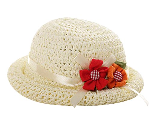 オフホワイト、赤ちゃんの夏のビーチ太陽の麦わら帽子、[2つの花を持つ太陽の帽子]