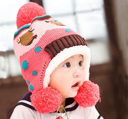 ベビー/子供手作りニット冬暖かい帽子/キャップ6-20ヶ[ピンク]